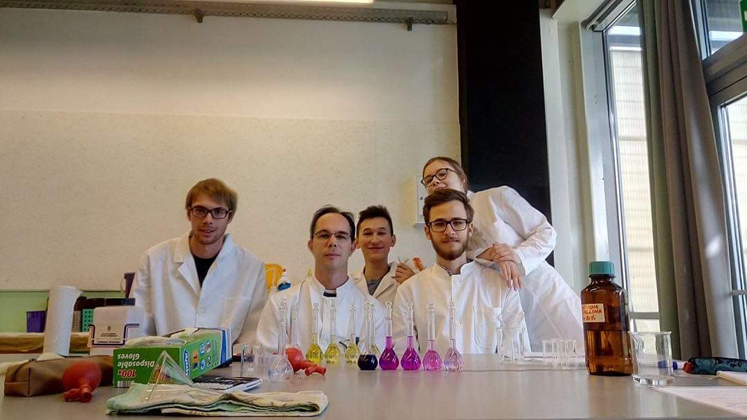 Održali smo dvije vježbe. Prva, koju sam ja držao, bila je vježba spektrofotometrijskog određivanja mangana i kroma u otopinama permanganata i bikromata. Pomoću Lambert-Beerova zakona odredili smo apsorpcijski koeficijent i onda su učenici sami odredili koncentraciju u nepoznatim uzorcima dobivenih miješanjem dviju otopina. Drugu je vježbu održao Luka u kojoj su učenici pomoću polarimetra proučavali kinetiku hidrolize saharoze. Saharoza je kiralan spoj, što znači da njezina otopina zakreće polariziranu svjetlost. U otopinu saharoze doda se klorovodična kiselina i nakon toga praćena je promjena kuta zakretanja svjetlosti. Time se mogao odrediti parcijalni red reakcije u odnosu na saharozu.