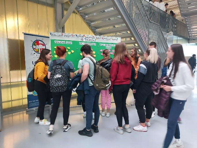 Prvog dana Festivala na glavnom hodniku škole reproducirala se prezentacija s porukama o važnosti mentalnog zdravlja, ali i s edukativnim ilustracijama o načinima samopomoći u situacijama kada nam je mentalno zdravlje narušeno. Prezentacija nam je poslužila da učenike ukratko uvedemo u temu tjedna.